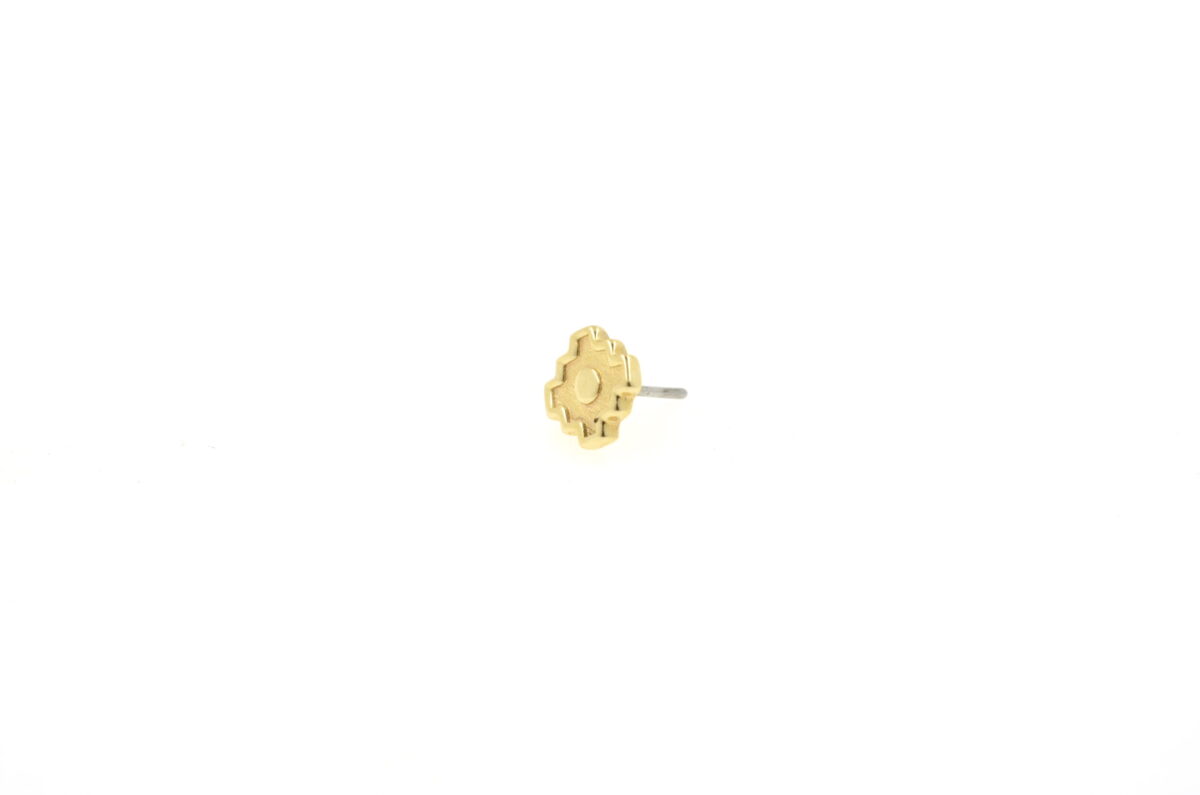Cruz andina escalonada de oro amarillo de 5mm de tamaño, con borde y centro pulido espejo y detalle interno texturizado. Diseño exclusivo realizado por Biometal inspirado en las culturas antiguas de los Andes.