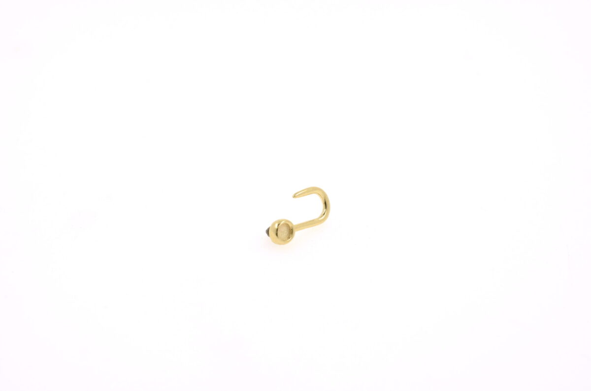 Gancho de suspensión de oro amarillo de 8*4mm de tamaño, con pulido espejo y detalle de ojetillo texturizado. Diseño exclusivo realizado por Biometal inspirado en la cultura de las suspensiones.